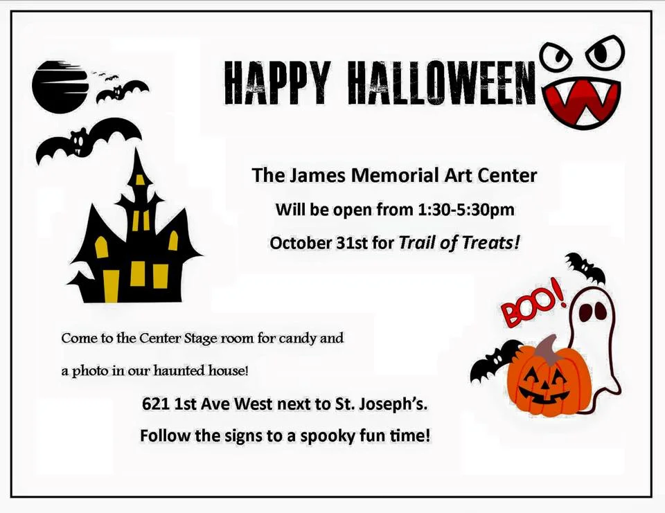 Calling all kids 12 and under to come Downtown Williston for a safe and fun Trick or Treating tradition! The James Memorial Art Center will also have a FREE photo booth starting at 1:30pm. After, join the Williston Parks & Recreations and Williston Police Association for the All City Halloween Party at the Raymond Family Community Center from 5:00pm - 9:00pm. It's going to be a spooktakular day!