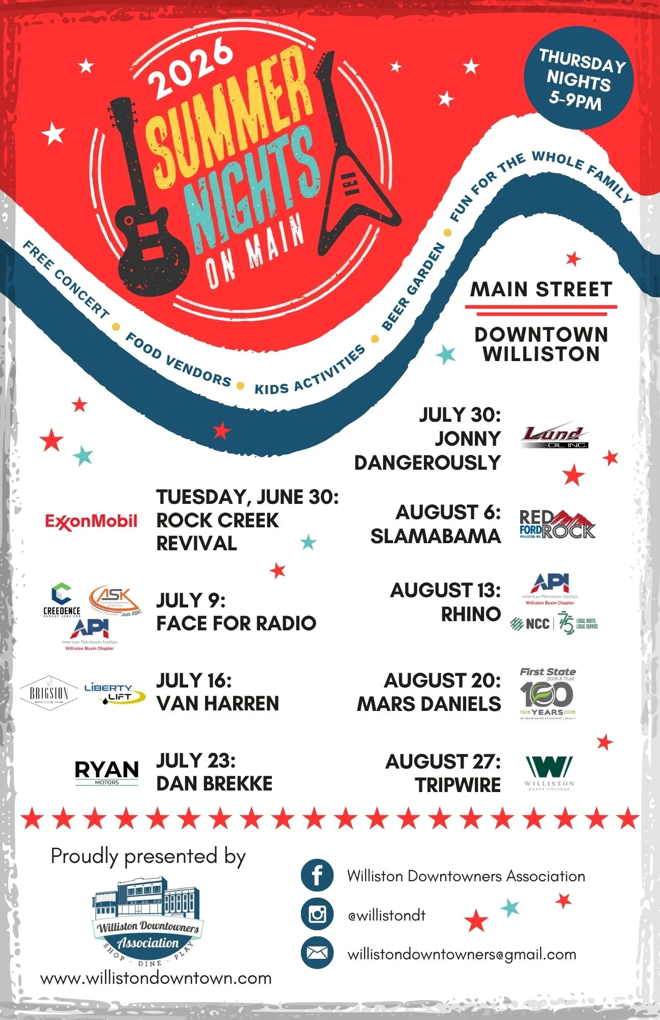 SUMMER NIGHTS ON MAIN Summer Nights on MainTHURSDAY NIGHTS | 5-9PMStarts TUESDAY: June 30thTHURSDAYS: July 9th - August 27thCome downtown to experience incredible live music, amazing food, drinks, kids’ activities, and more!